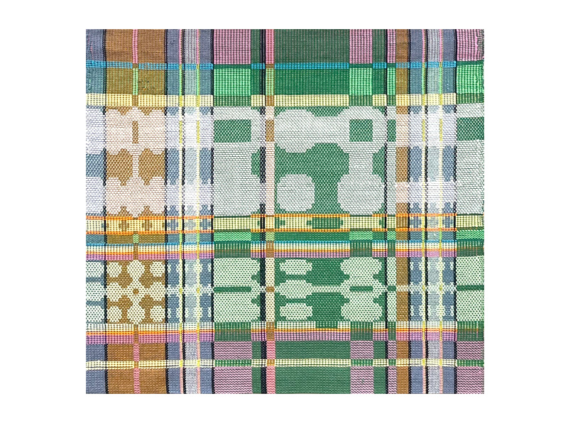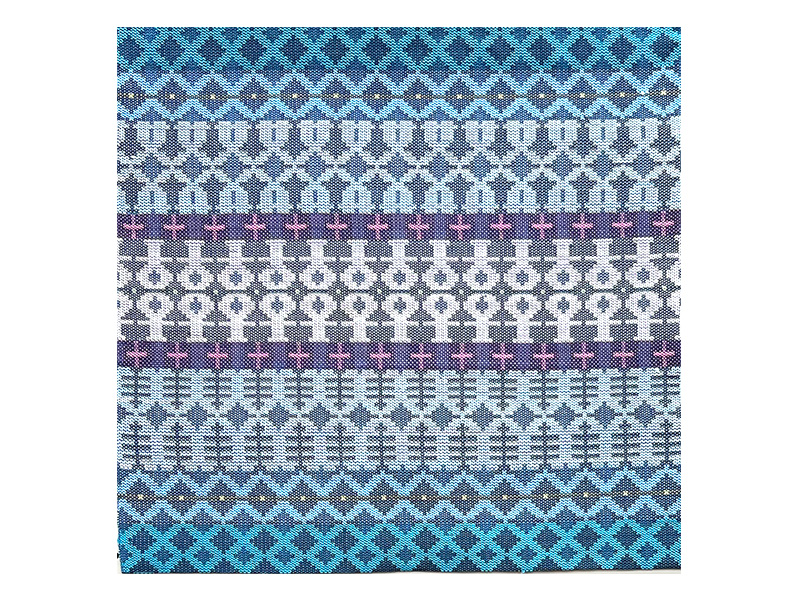 コンピュータを利用したパターンを制作し、多綜絖(8枚から10枚)の機で織ります。模様を出しながら、堅牢な布とする基礎を学びました。