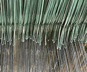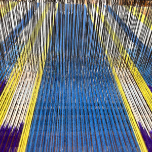 卒業制作の前の試作品で、複雑なグレーの色を出すために始めた玉虫織でしたが、赤と緑、赤と青、赤と青紫、黄赤と青など、いろいろな組み合わせを試してみたいと思います。